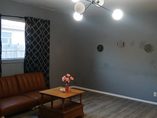 Three bedroom furnished with open space floor plan and remodeled bathroom for rent. 6 months is $250 extra monthly. Pets rent is $30 extra monthly . And pet rent is $300 non-refundable . Furnished with one queen bed, soffa bed, coffee table, book shelves , and dishes. Please drive by to see the house first. The backyard is fenced. There is solar panels . There is one car garage. Near walmart. Deposit is $1500. Ask permission before apply application. show contact info