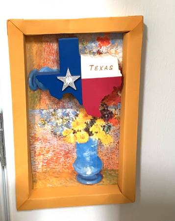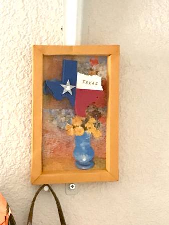 Koi Fish and Frame, Koi is about 3” In Length, Fish Not Yet Permanently Glue. Frame with Owl, Hearts, Butterfly, $3.00 Texas Refrigerator Magnet, $6.00 Chicken, $3.00 Each