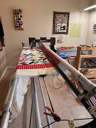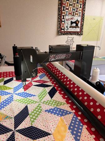 Nolting fun quilter 17 long arm sewing machine on a 10-foot table. Features stich regulator with many accessories included. Must pick up in Las Cruces N.M.