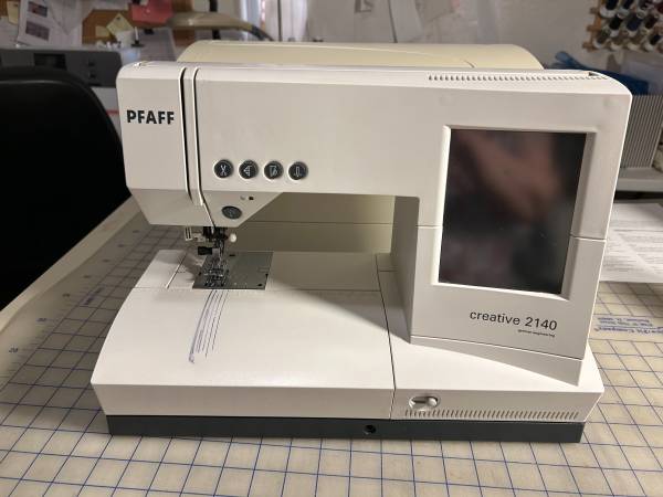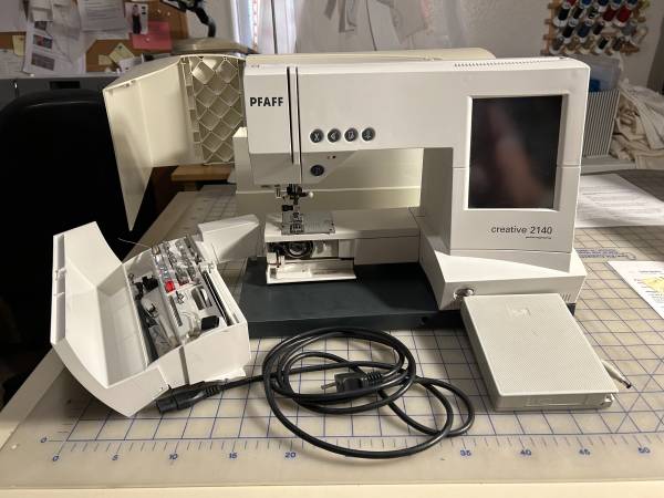 The Pfaff creative comes with embroidery unit & hoops, cable, knee lift, original tools & feet, carry case, multiple CD designs, original instruction book, & printed out papers with further instructions from sewing class, pre-wind bobbins, Dissolvable stabilizer. All items in pictures.