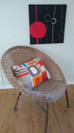Wicker chair from 1962 Mod pillow and wall art Set of 3 = $50