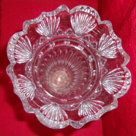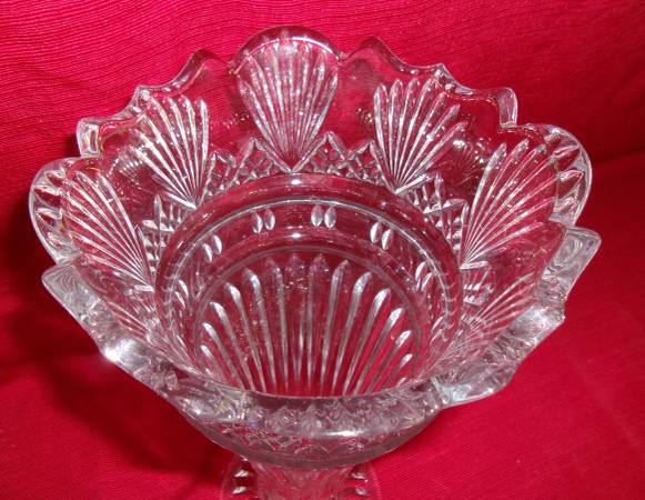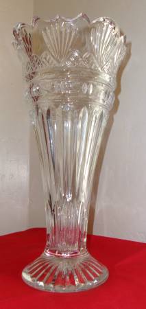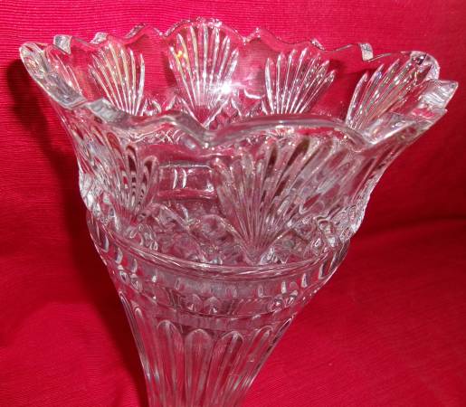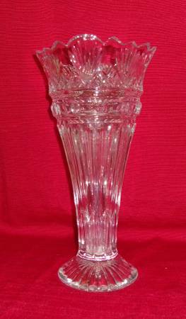 Gorgeous, elegant antique vintage crystal glass vase with intricate design and scalloped edges. 14" tall, 7.5" diameter at top, 5" diameter at base. Very heavy! Excellent condition and has been carefully stored in a smoke free home. DISCOUNTED to $40 CASH only, please. Check out my other listings!