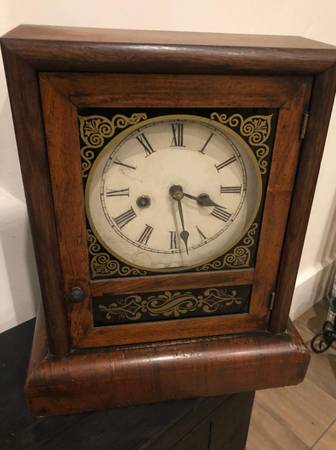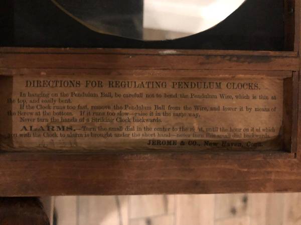 Antique 1800's American Clock by Jerome & Co FOR DISPLY/REPAIR / PARTS Dimensions L 13.5 x W9.5 Cost $120 Text