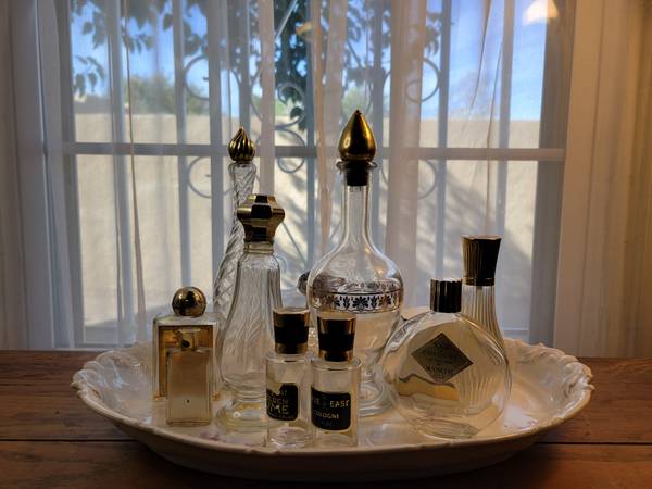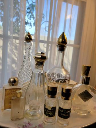 Excellent find for those interested in reusing, reclaiming, and reinventing vintage cosmetics, perfumes, sprays and body creams. Trays pictured not included.