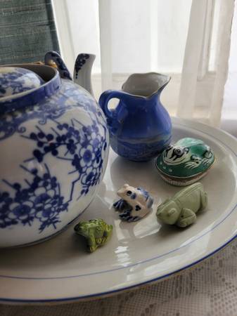 These are lovely collectible items for display or to sell in other markets. Glass items in excellent condition. Some porcelain items have chips.