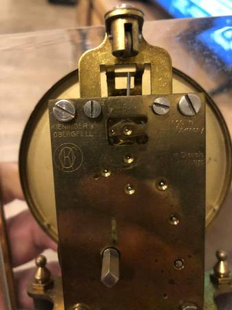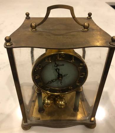 Kieninger Obergfell Gold Tone Mantle Clock in Glass Case West Germany FOR DISPLY/REPAIR/PARTS Dimensions L 7.5 x W 6 Cost $125 Text