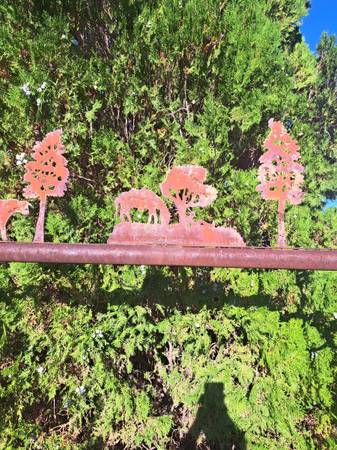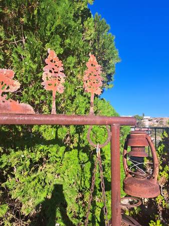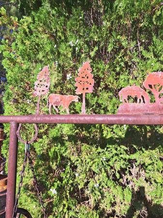 This wonderful old Swing is about 7' tall from the ground to the tip of the trees and it is 5 1/2' wide.