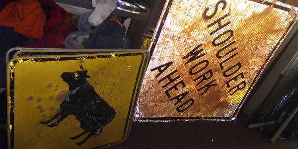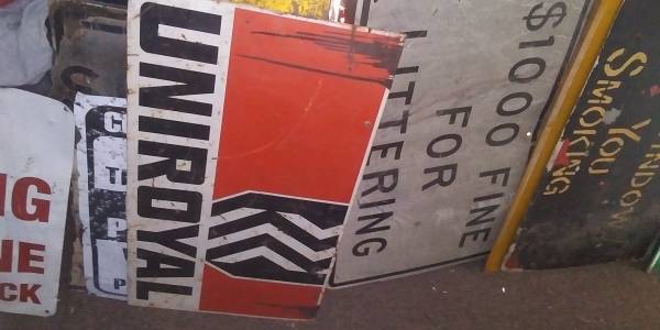 Vintage Signs Garage Shop Man Cave Decor: Lots of character, patina, bullet holes. I have numerous road and automotive related signs, I'd prefer to sell all as a package.