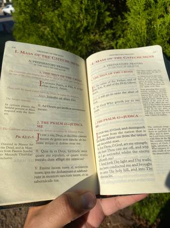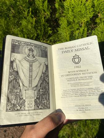 Angelus Press 1962 Missal. Used for Catholic Traditional Latin Mass. In perfect condition minus missing placeholder ribbons.