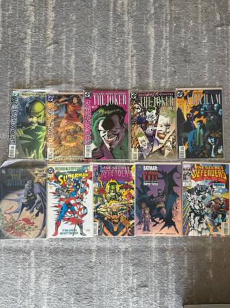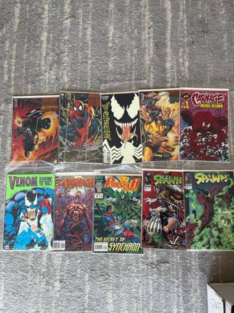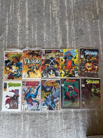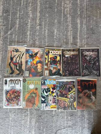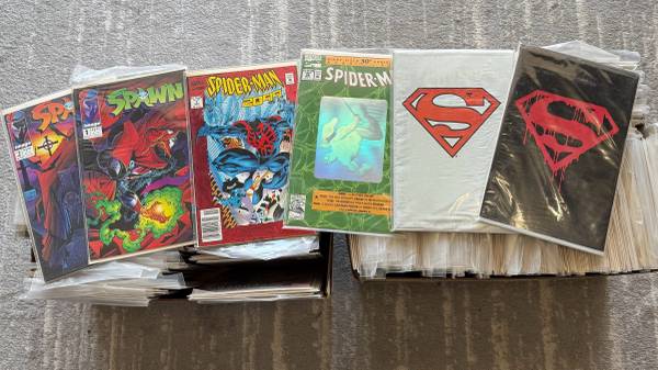 For sale is an assortment of comic books; two boxes of comic books from the 90’s; about 445 comics in total; all have been kept in plastic sleeves with cardboard backing; Marvel, DC, Image, Dark Horse, and others; $500 for all, not looking to sell individually; if interested please text 575-649-383seven