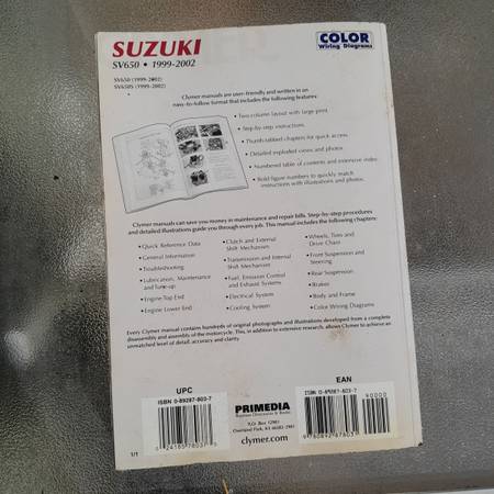 Service Manual Suzuki SV650 1999-2002 Motorcycle Clymer CASH ONLY Transaction takes place in public