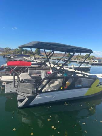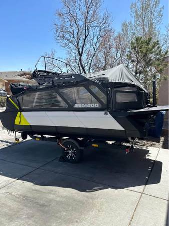 2022 Tri-Hull SeaDoo Switch Sport 45NE. 18 ft with a swim platform that extends the total length to 21 ft. The Switch has a Rotex 230 hp 4-stroke gas engine and Intelligent Brake and Reverse. Switch trailer is included in the price. Only 45 hours. All boat safety items included. This Switch has several modes from sport, eco, tow, and normal allowing you to water ski or wake board. Able to accommodate 7 people for a great time with family and friends on the water. Top speed 42 mph. Fuel Capacity 29 gallons. 2209 pounds dry weight.