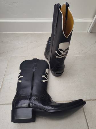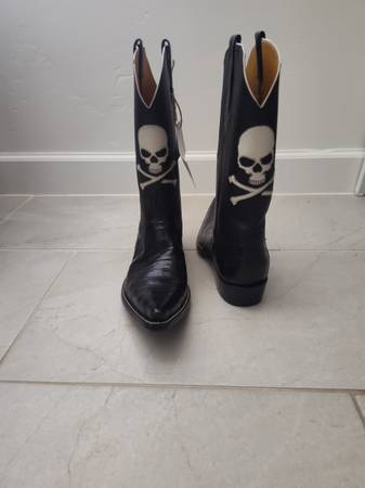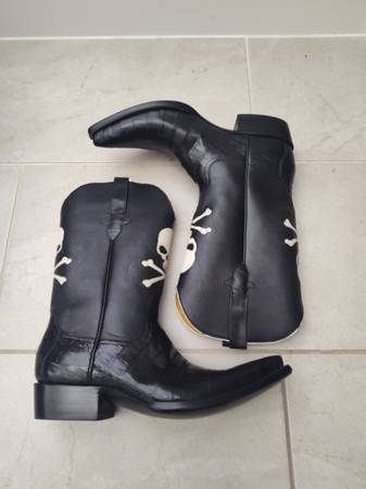 These handmade cowboy boots are a must-have for any fashion-forward man. The boots feature a unique skull theme, making them perfect for those who want to stand out from the crowd. The leather material is top-quality, ensuring that the boots will last for years to come. The boots are a size 10D and are designed to fit comfortably throughout the day. The outsole is also made of leather, adding to the durability and longevity of the boots.