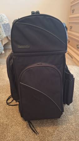 Large sissy bar motorcycle travel luggage. Heavy duty nylon travel bag. 21" h x 20"w x 9"d. Comes with rain cover. Practically new. Cash only