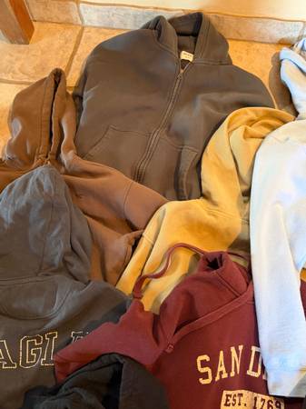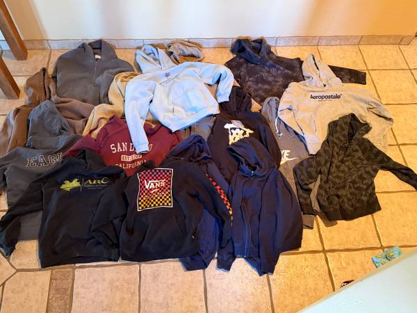Hoodies outgrown by my son. You can have any 4 for $20. Mostly size Men's Small, one is a Boys XL. probably fits kids 5'0" to 5'9".