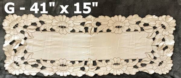Example 2 … Lovely Vintage Table Centerpiece or Tray Cover- Light Ecru Linen with Embroidery – 12” x 18 1/2" … $24