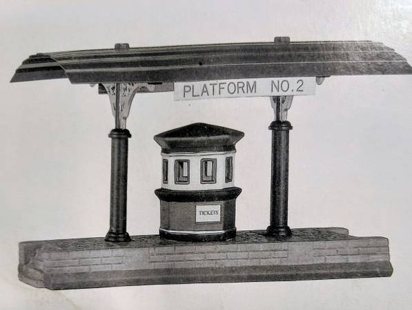 Train station (lighted) plus train platform and figurines pre-owned and excellent condition. All in original boxes and packaging.
