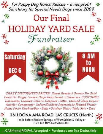 Location: Las Cruces – 1 mile before Radium Springs and the Blue Moon. Dona Ana Rd / Valley Dr / Fort Selden area. (Fort Selden exit off 25 North). We can also meet in the Family Dollar parking lot on Fort Selden Rd. * We can also meet at Family Dollar on Fort Selden Rd. *