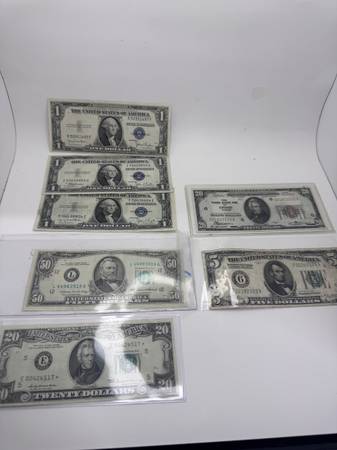 Mint sets 1963,1962,1967 $70 for all Notes: $20 star $30 $50 $60 $5 $10 $1 (3) for $15 $20 Chicago $100 All prices firm Las Cruces