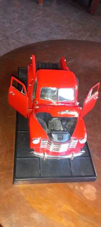Sold. $ The Mira Chevrolet Pick-up from 1953 in red is a diecast toy vehicle featuring a 1:18 scale model of a Chevy truck. This collectible item is perfect for enthusiasts of classic cars and trucks, offering a detailed and accurate representation of the iconic vehicle. With its vibrant red color and authentic design, this toy is sure to be a standout piece in any collection.