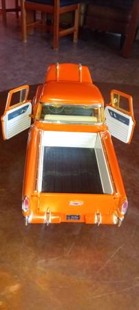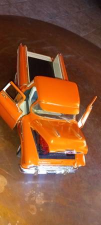 SOLD The Ertl American Muscle 7853 1/18 Scale 1957 Chevrolet Cameo Diecast Replica is a collectible toy vehicle that accurately replicates the iconic Chevrolet Cameo truck from 1957. Made of diecast material in a striking orange color, this replica is part of the ERTL American Muscle series and is branded by Ertl. It is a detailed model suitable for collectors of all ages, especially boys and girls aged 14 and up who are interested in transportation-themed toys and hobbies. This diecast replica captures the essence of the classic Chevy truck and is a perfect addition to any car enthusiast's collection.