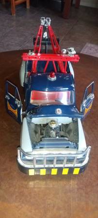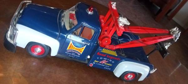 very small chip driver side rear bumper (hardly visible) Road Legends 1953 F-100 Wrecker Tow Truck is a highly detailed 1:18 diecast model made by Road Legends. This blue Ford F-100 tow truck features a realistic design and is part of the Road Legends series. It is recommended for children aged 8 and above, and is a great addition to any diecast vehicle collection. Made in China, this toy truck is perfect for both boys and girls who love trucks and enjoy collecting diecast vehicles.