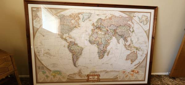 This a large National Geographic Framed Collectors wall map, measuring 6' x 49" at the frame edges. This is in excellent condition and is a fantastic collectors wall map.