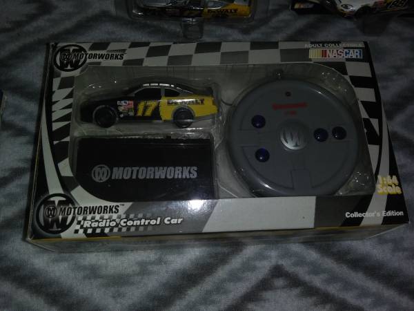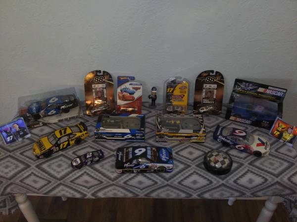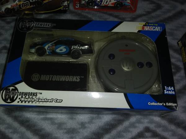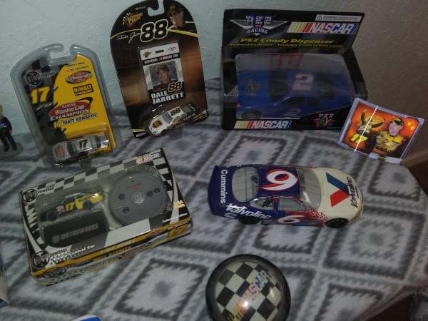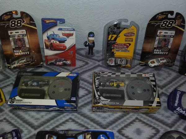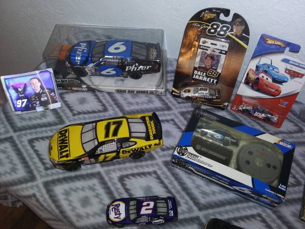 Hologram cards, collector edition 1/64 radio control cars, 1/24 scale cars, die cast cars, 1/24 scale radio control car, even a Mark Martin chocolate car tin with chocolates still inside. Had it all priced out and come out to around $225. Most everything is NIB and kept in containers. Want to sell it all,