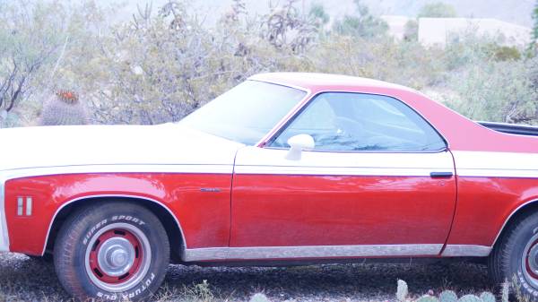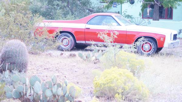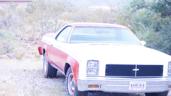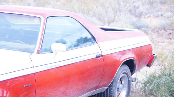 1976 Chevy El Camino. New paint, was taken back to bare metal. Two tone, all the trim on the body. There are side rails for the bed but not mounted. 350 V8, transmission new/replaced. New exhaust. New Interior Dash pad. Sound proofing put down on floor and firewall.