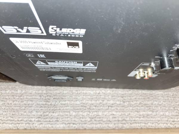 SVS SB 2000 Sledge STA 500D Sub. This thing will definitely shake the walls. Barely used only operated when needed some sub support when I had my smaller integrated amp hooked up. Pics shows a lot of dust on sub, it will clean up very nicely. It will not disappoint.