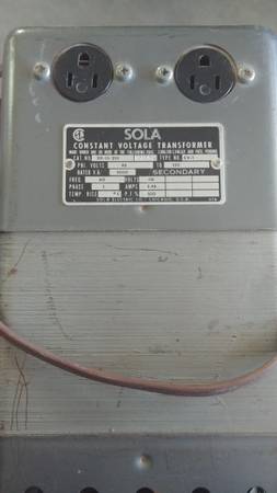 Constant voltage transformer. Catalog no. 20-13-210. Made by Sola Electric Co. Text @ 575- nine nine 3- 139 six.