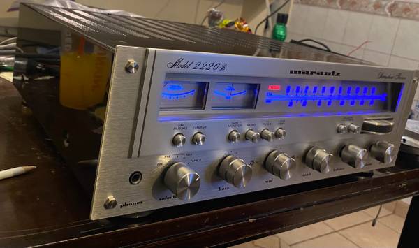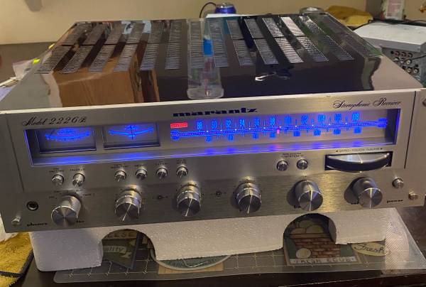 Marantz Stereophonic receiver 2226B New lightbulbs, LED custom cabinet, professionally painted to a mirror finish Works looks and sound amazing ! Art piece . I also have Marantz 12 inch cabinets to...