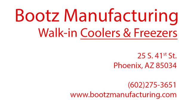 Since 1955, Bootz Manufacturing has been a trusted manufacturer of high-quality walk-in coolers, freezers, and combination units. Based in Phoenix, Arizona - Boxes by Bootz - are quick to install, efficient to operate, and easy to clean – helping you save time and money. Contact us today at (602) 275-3651 for a free quote, no-obligation quote, and let us customize the perfect walk-in solution for your business needs. Now offering trim!
