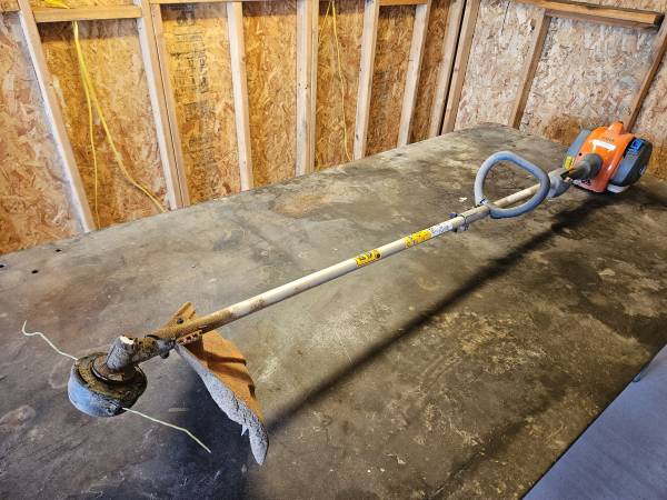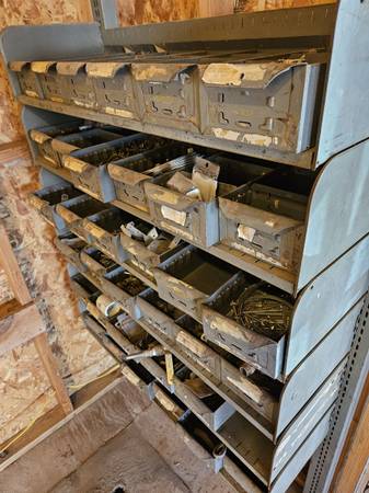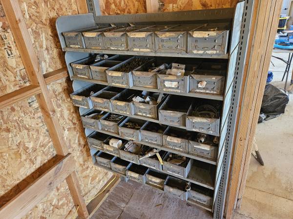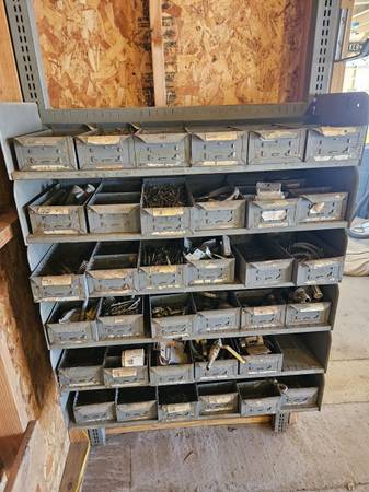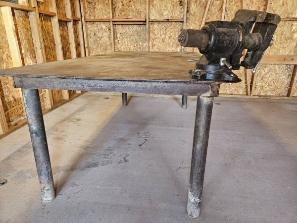 Welding bench with vice. 44" x 74" with 1/4" plate top. Also includes a vice. $200 Husqvarna string trimmer. Only a couple years old. Very little use. $50 Heavy duty bolt bin. 36" wide. Rails 72"...