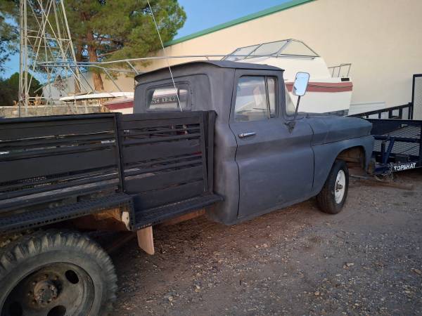 1962 GMC flatbed with custum bed dually 305 v6 clear title engine turnes over but needs some tlc. Rust is managable.