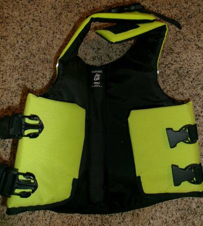 Light Green Recreational Dog "Float Coat" Life Jacket Swim Vest-size S/M never worn. Light Green Dog Swim Vest - size Small on tag, but could be a Small/Med. Excellent condition-tags still attached. $30 cash only, please.