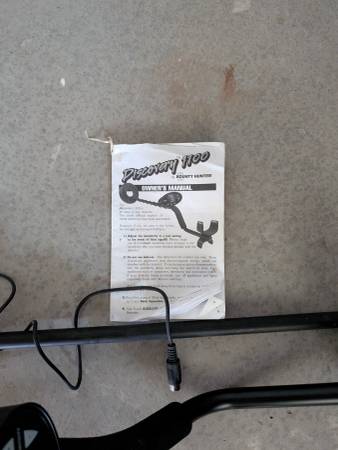Discovery 1100 metal detector. Uses 2-9 volt batteries. Has been used very little