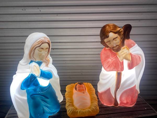 Vintage Blow Mold Nativity- 3 figures - Joseph, Mary, Baby Jesus.