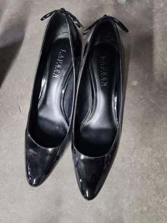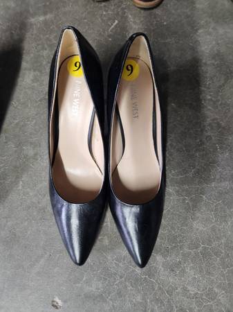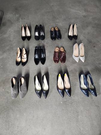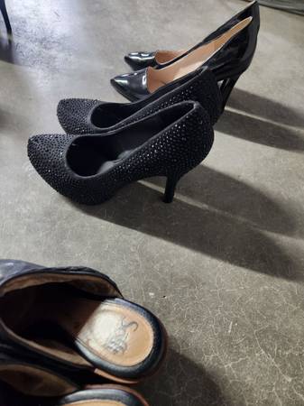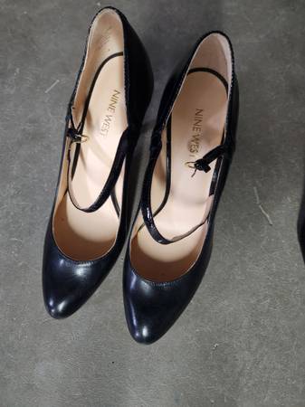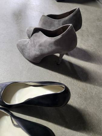 Gently Used Womens Dress shoes. Nine West, Ralph Lauren. Apt 9, Sofftt. Sizes vary from 8-9 First row front, left to right Grey Apt 9 boots/ shoetee, size 9, 4" heel Black Nine West heels Size 9, 3...