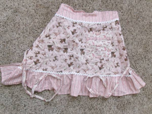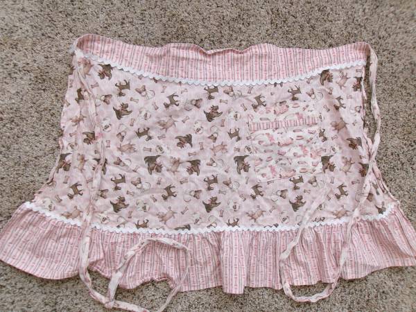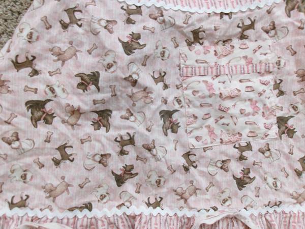 Adult Size Cotton Handmade Apron featuring an assortment of sweet pooches, a large deep pocket and accented with brickabrack trim. (Should be gently washed). $12 CASH, please.