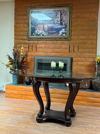 NO SCAMMERS! $350 OBO Big glass dining table. Absolutely beautiful for a family dining room ~ kitchen. Glass alone is worth over $300. It’s gotta go. It will be the focal point of any room. Perfect condition. Not used daily just on holidays. Make me an offer but text or call because I don’t do email. 575-eight hundred-4195.