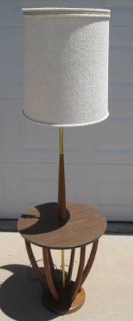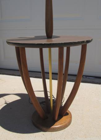 Vintage Mid Century Modern Floor Lamp with table in the Style of Adrian Pearsall. Measures 63 inches to top of shade, 47 inches to top of socket and 21 inches to top of table. In good condition....
