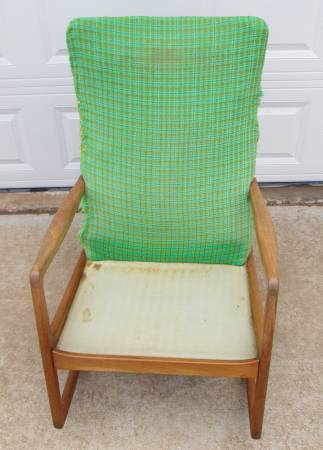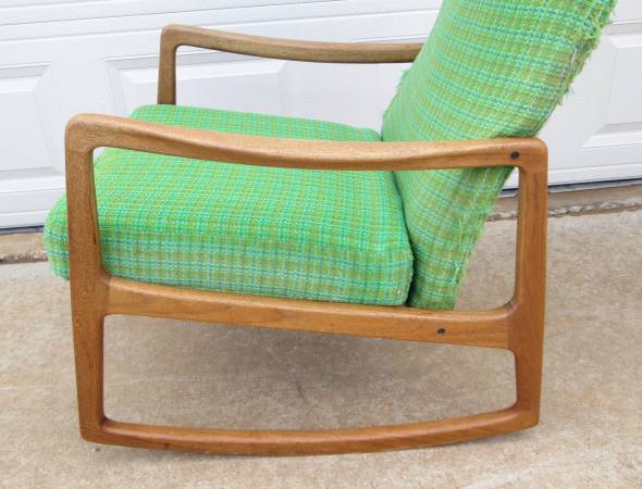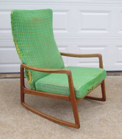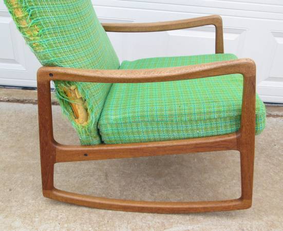 Vintage Danish Modern / Mid Century Modern Model FD160 High Back Teak Rocking Chair designed by Ole Wanscher for France & Son. The chair measures approximately 40 inches tall, 26-1/2 inches wide...