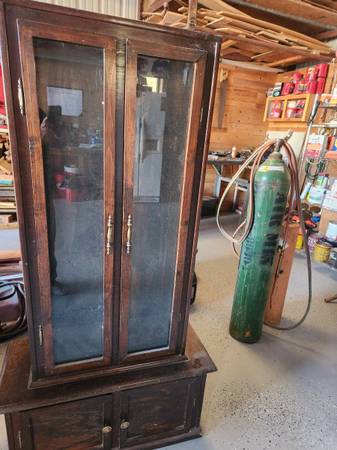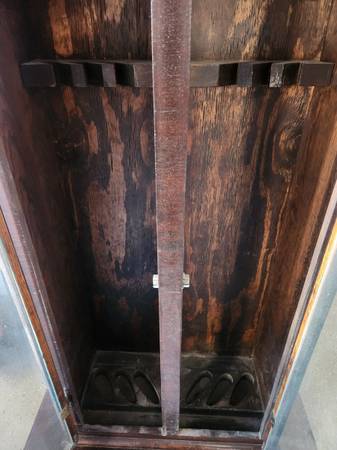 Custom gun cabinet. Good shape. Holds 6 rifles. Ammo and cleaning storage on bottom. Stands 5ft 6 inches tall. Asking $140. No emails text 575 373 5#9#2#4