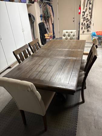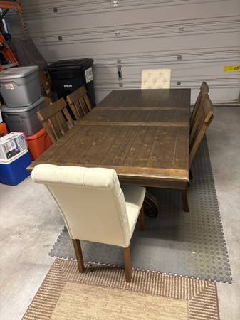 Dining Room Set, good condition. Purchased at Ashley furniture in 2019. Six chairs. Table is 42” x 86”. $700 CASH
