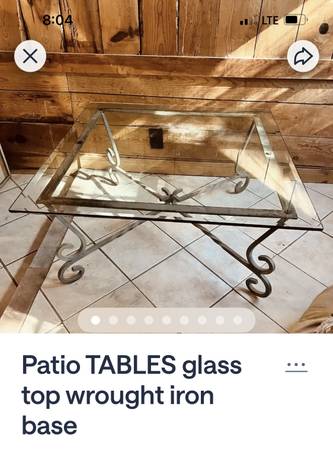 2 matching glass top tables good condition. Minor scratches consistent with age & use. Indoor / outdoor . 1 inn table rectangular. Other larger, square coffee table size