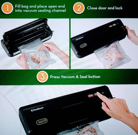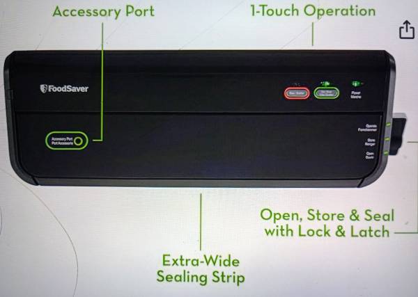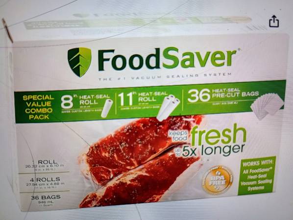 New Food Saver, Vacuum Hose, Wide Mouth Jar Sealer, Attachments and Owners Manual. Plus 2 Additional Large Boxes of Vacuum Sealer Bags. Selling for $75. (Amazon price $195. w/ 2 Boxes Bags) Call ask...