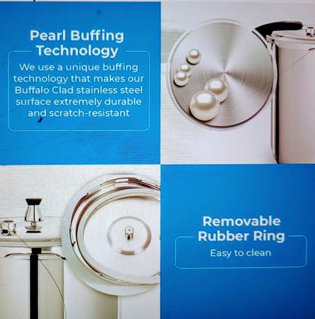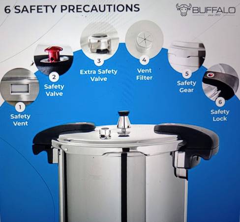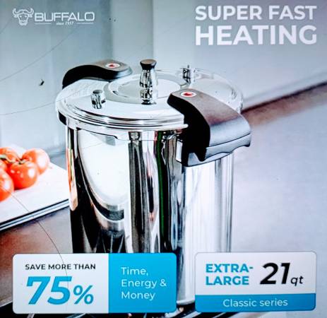 "Brand New" Buffalo QCP420 21 Quart Stainless Steel Pressure Cooker. Includes additional Replacement Silicone Gasket. Selling for $175. (Amazon price $518. w/ tax). Call as for Mike in Alamogordo.
