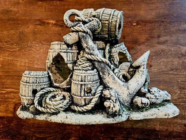 Full Set Up.......Oceanic 65 Gallon Fish Tank, 48x15x24, thick 3/8 inch glass, with wood stand. Includes all decorations, air bubbler, gravel, tank heater, attachments etc. Have several other tank decor items I will throw in, ie this 18x16 anchor decor. This is a glass, commercial tank, no scratches, no cracks and no leaks! Has never been left empty or w/o water! Also, has Fluval 3 stage canister filter system.