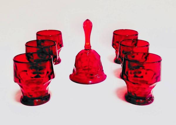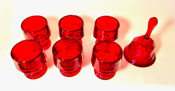 Original Vintage Georgian Ruby Red Honeycomb Drinking Glasses / Tumblers 5 oz - Set of 6 with Matching Bell The set includes 6 thick drinking glasses/tumblers We are located in Las Cruces, NM ~ CASH...